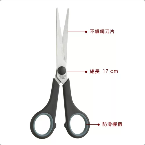 本商品一件入、適用洗碗機;尖銳物品請遠離孩童與動物。家庭必備的萬用剪刀,不論文件處理或裁縫剪線,都非常適合,是款屬於萬用途的家用剪刀。手握處加強止滑橡膠,讓您施力時也提供緩衝,手拿更舒適。