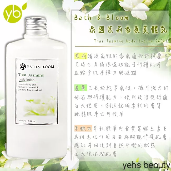 商品推薦:Bath&Bloom 泰國茉莉香氛美體乳260ml 兩入組