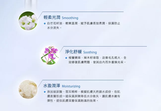 ? 添加加拿大柳蘭與辣木籽,改善肌膚問題、抵抗暗沉、緊緻毛孔、舒緩肌膚